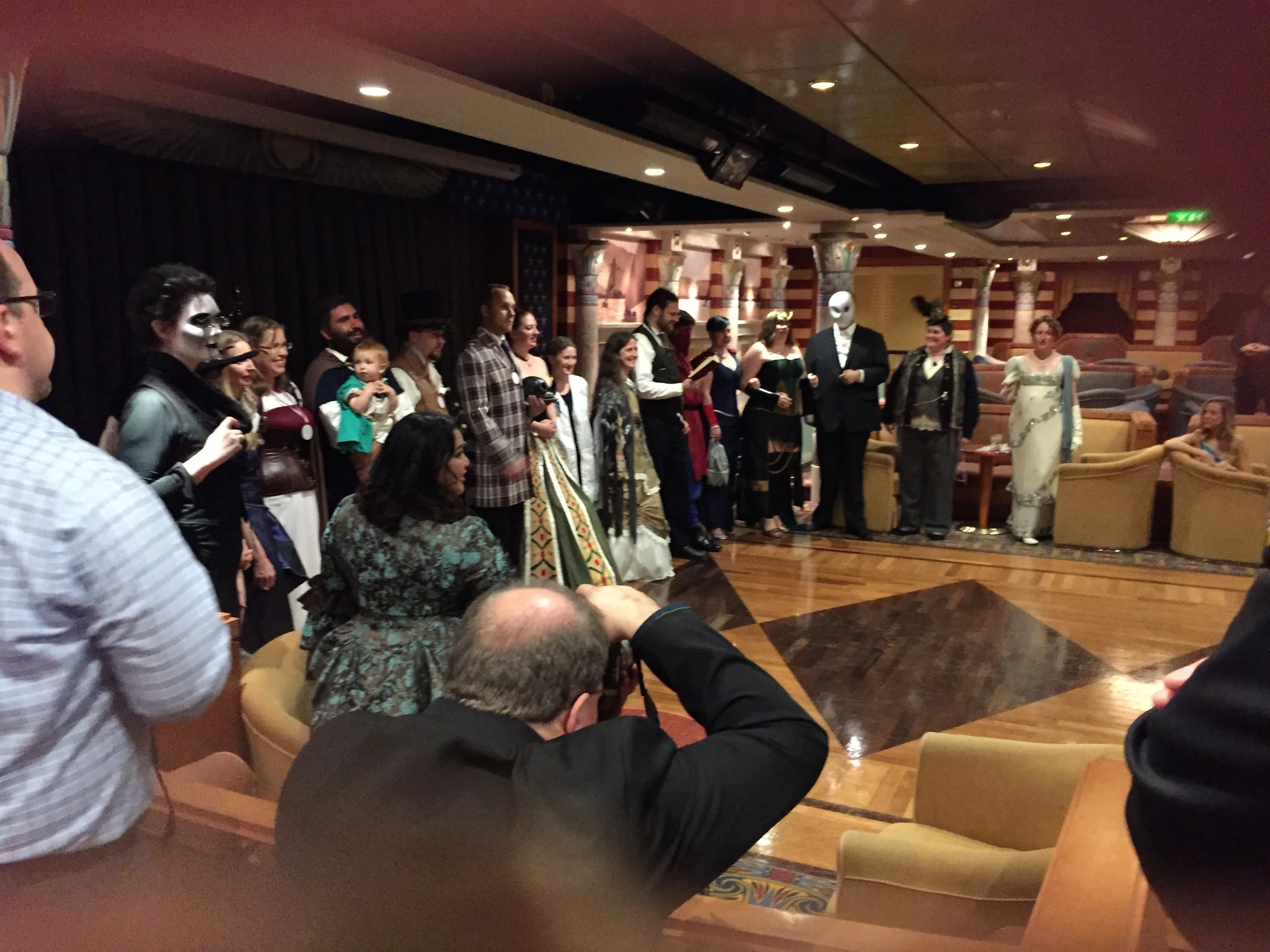 There’s a final farewell party and it’s a great little so long to everyone. First of all cosplay happened. We were encouraged to dress formally as a character from fiction. I took some bits of an old Dresden costume I had, couldn’t pack my duster, and made the scene. The creative needs of all my fellow authors was on full display and it was awesome that this was also the night we did a big group photo. It was an awesome cap to the week.